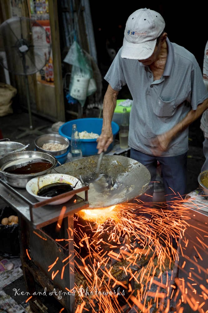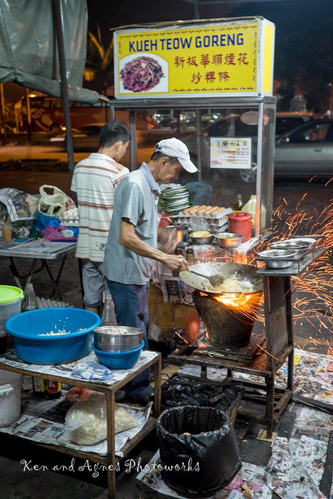 The Chinese name of the stall 新板华顺烟花炒粿条 is translated to Simpang Fireworks Fried Kuey Teow. The uncle who fried the kuey teow is like a performer, with each plate of kuey teow he fried, he was sending sparks flying.