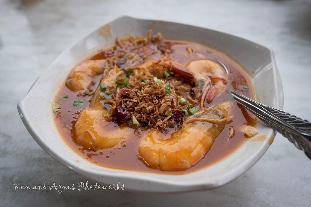 The outdoor restaurant was packed when we arrived. But seriously, I don’t know what’s the hype about. For RM11 per bowl, the noodle came with a generous amount of big prawns; to me, that’s all. Don’t like the alkaline taste of the noodle, and the starchy sauce.