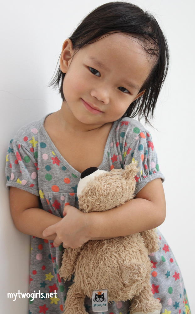 Over the weekend, Daddy and I sneaked out for our hair cuts when the girls were taking their naps. When we came back home, we were expecting kids with teary eyes or complaints from them, but was pleasantly surprised when Zaria dashed out with a big smile to hug me and said, “Mummy!!! I’m so glad to see you.”.